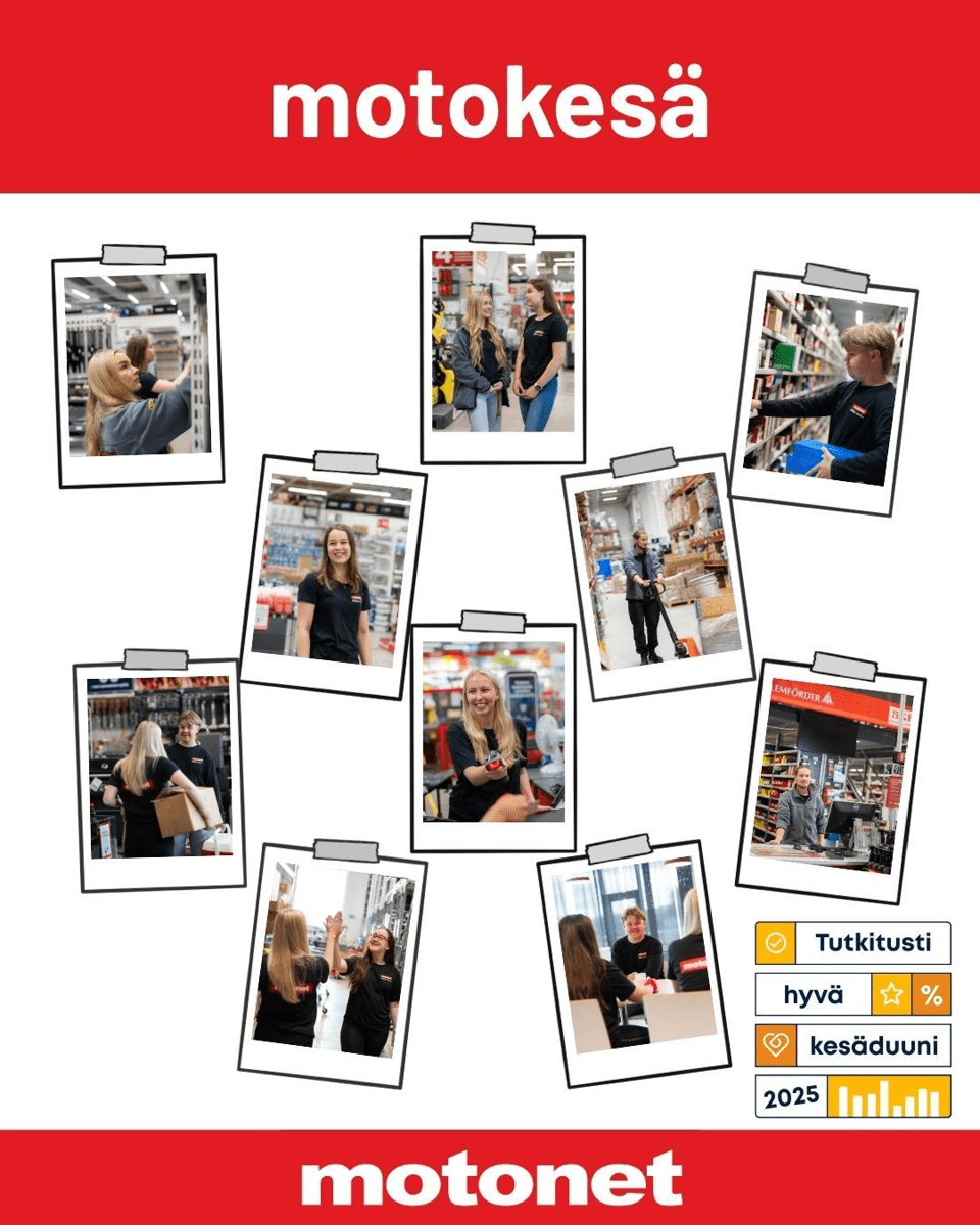 Kausirekrytoinnit Motokesälle 2026 avautuvat tammikuun kolmannella viikolla. Käy seuraamassa urasivuamme ja vinkkaa kesätyöpaikoista myös kaverille.